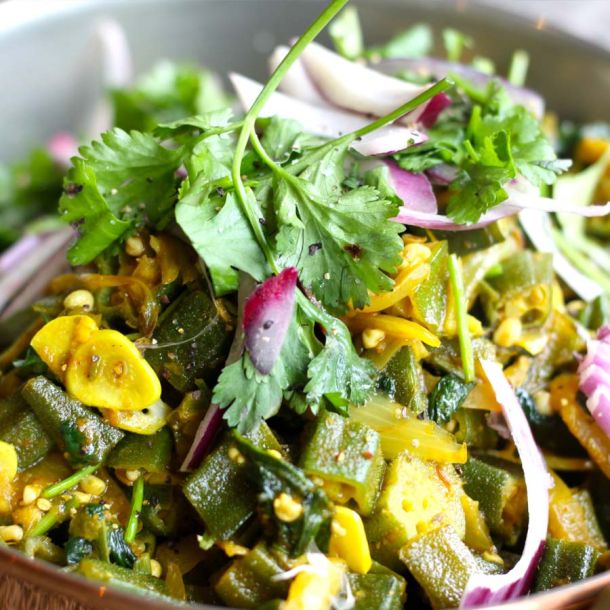 Okra är en populär grönsak i Bangladesh och äts framförallt under den regniga vintersäsongen. Okra innehåller utöver k-vitamin, magnesium, kalcium och kalium som behövs för kroppens nerv-och muskelfunktion samt reglerar blodtrycket. Okra vadji äter du med ris och passar perfekt som en lätt lunch.